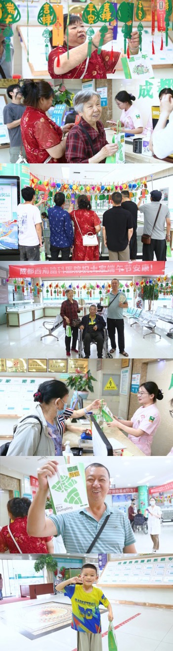 包完粽子,猜完灯谜,西南脑科医护人员还为住院病人及家属送去了粽子和咸鸭蛋,为院内病人提供力所能及的帮助,让他们在安心治病养病的同时,也能享受节日的快乐。
